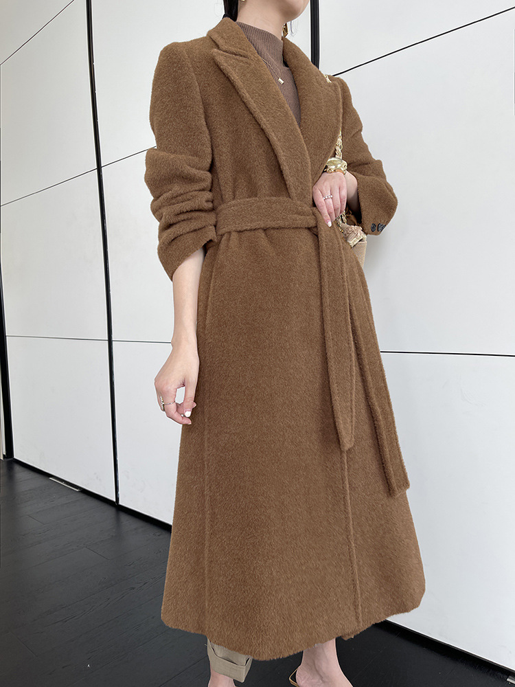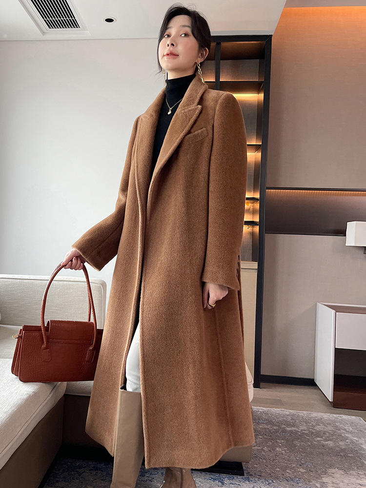 骆马绒大衣女2025冬季新款简约中长款羊驼绒阿尔巴卡毛呢气质款
