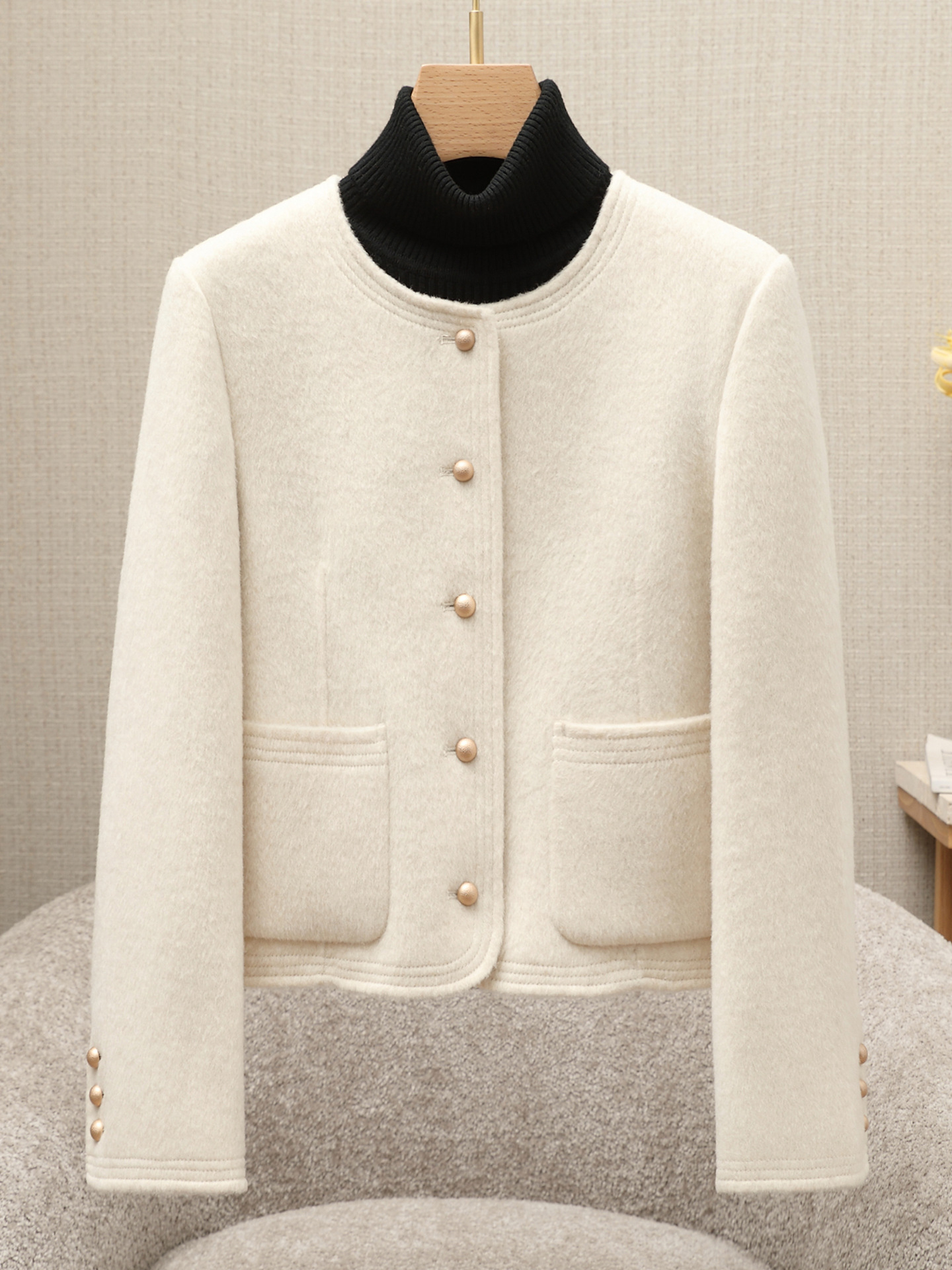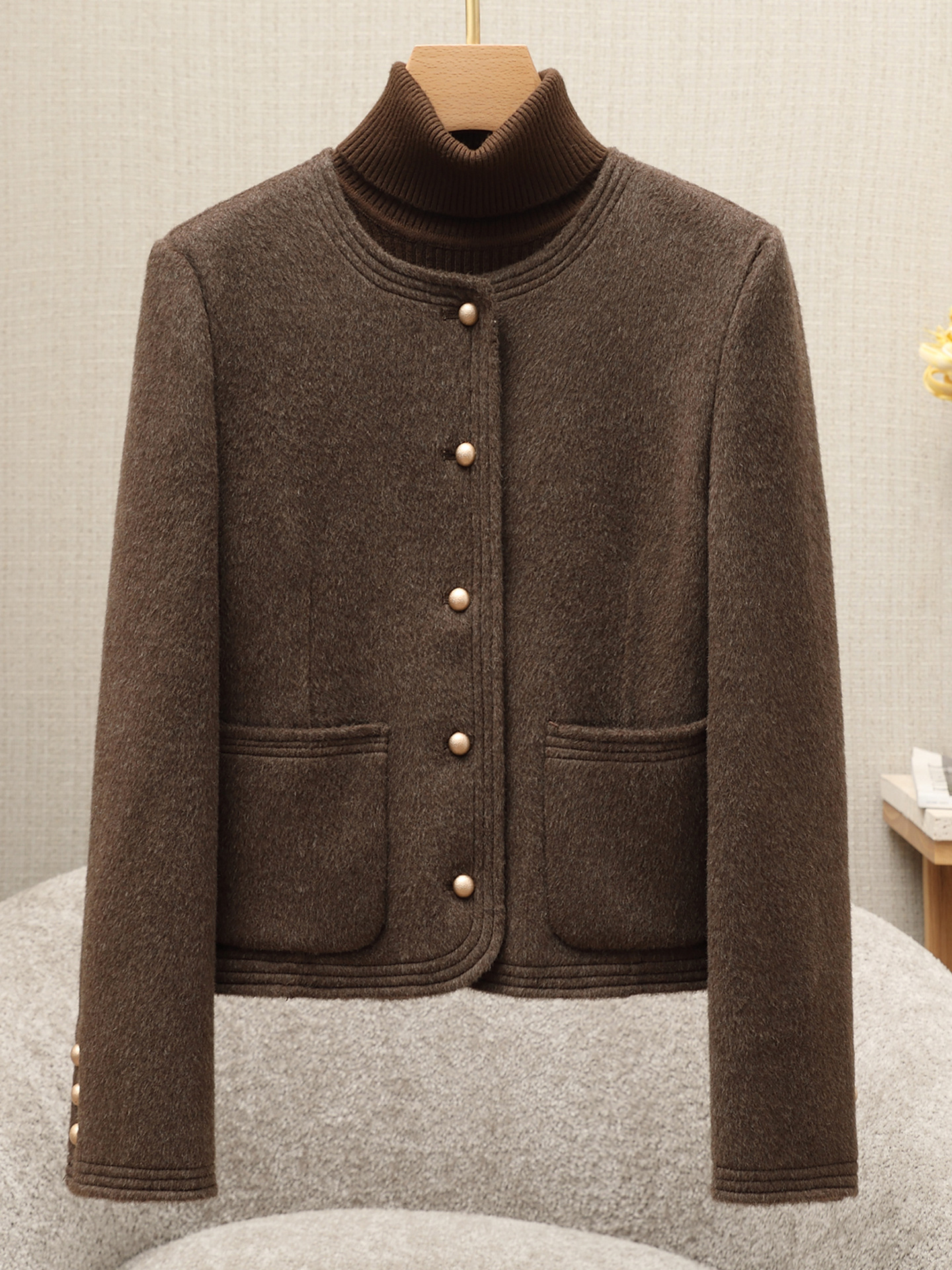 小香风双面呢羊毛大衣女2025秋冬新款小个子短款圆领羊毛呢外套