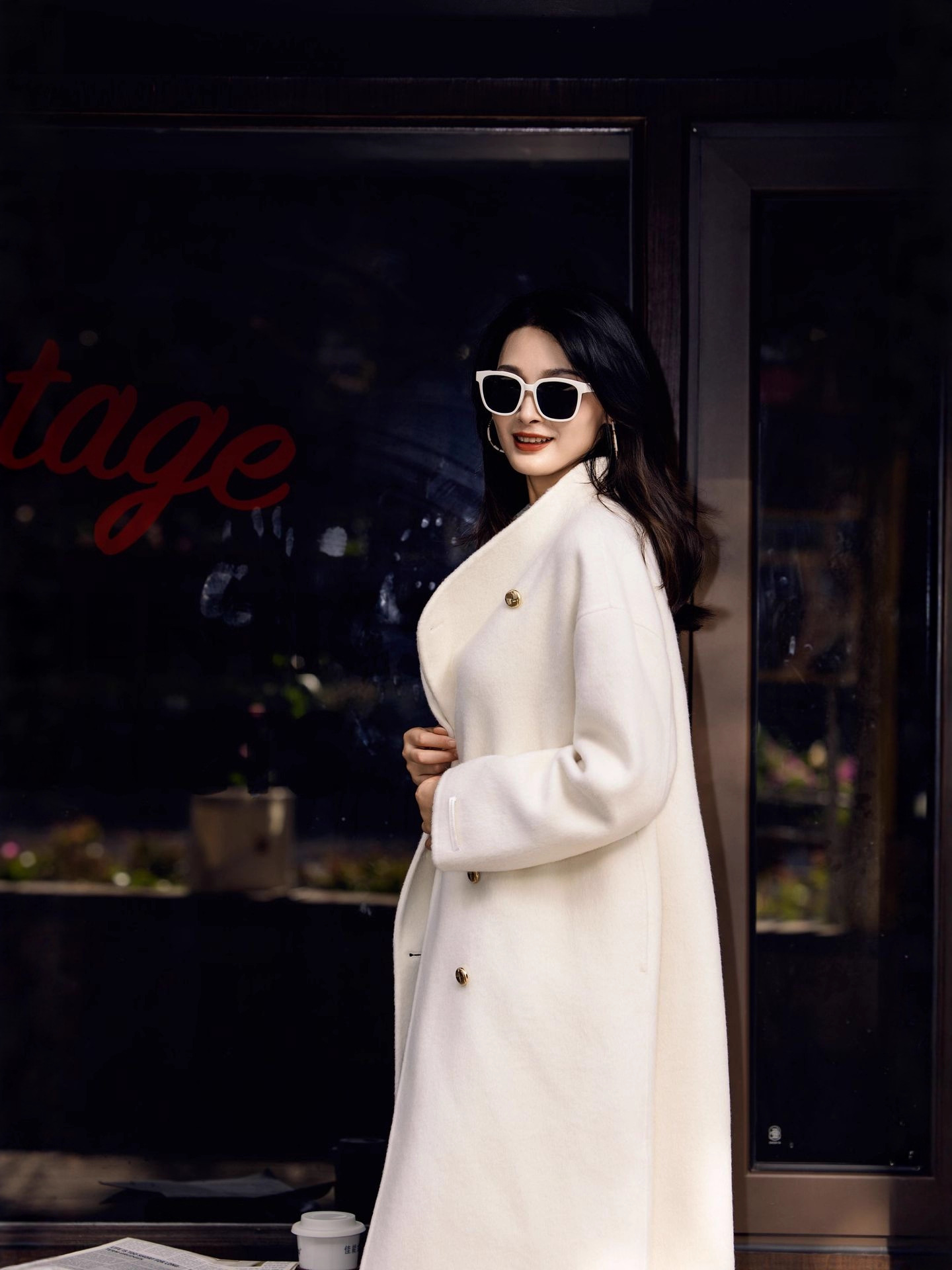 现货 2025冬季新款韩国东大门OU*CE翻领双排扣苏力羊毛大衣外套